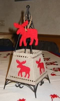 a Christmas elf for a stick girlfriend the elk I have for the Elk hanger designed - embroidered 1fädig on the tape - the tape in the right places stitched and attached to the lamp - has inside the lamp, place a tea light