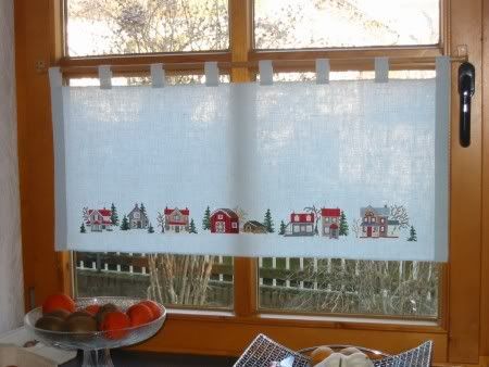the curtain hanging in the winter at my kitchen window - You can see from the photo, unfortunately, not so good, but the houses are in the snow and the trees have no leaves ... and that is why making in the summer is not as good * *
